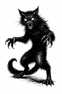 Big Ears was a demonic cat invoked during the ‘Taghairm’ ceremony, when live cats were sacrificed over fire. Big Ears would grant one wish to those who partook in the ceremony. Perhaps Big Ears is associated with Ieles, the vampiric cat able to walk on its hind legs.