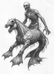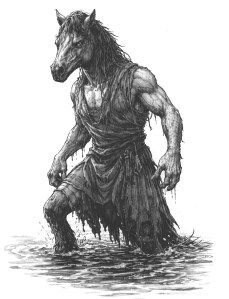 Each-uisge is a water-horse in Gaelic and is known for immediately heading for deep water to drown and eat its rider, just not their liver, it hates human liver.