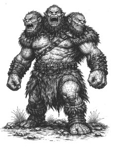 One of the oldest recorded folk tales in Scotland, published in 1550 is that of ‘The Red Etin’ a three-headed Ogre who lived at Edin’s Hall Broch in Berwickshire. He had a herd of two-headed, eight-horned oxen. Any traveller who encountered Etin was immediately asked three riddles, and if unable to answer, was turned into a pillar of stone.