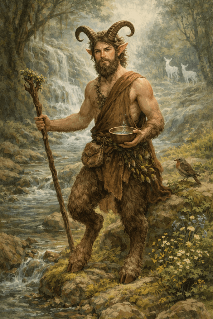 Another being with a goat connection is the Urisk. The Urisk is half human and half goat (lower half), with long, often green, hair and sharp claws. In folklore traditions, Urisk is either the progeny from the union of Elf and human, the result of the Fairie’s curse, or one of the Faun.